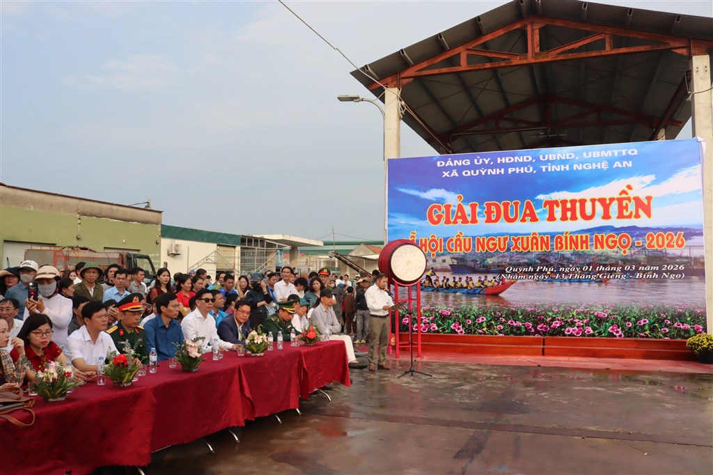 Sáng ngày 01/3 (tức ngày 13 tháng Giêng năm Bính Ngọ), trong không khí rộn ràng của những ngày đầu xuân, Đảng ủy, HĐND, UBND, UBMTTQ Việt Nam xã Quỳnh Phú đã long trọng tổ chức khai mạc giải đua thuyền truyền thống năm 2026, nằm trong chuỗi hoạt động của Lễ hội Cầu ngư. Đây không chỉ là sự kiện thể thao đặc sắc mà còn là nét đẹp văn hóa tâm linh lâu đời, gắn bó mật thiết với đời sống sông nước, thể hiện khát vọng vươn khơi, bám biển và chinh phục biển cả của ngư dân địa phương.